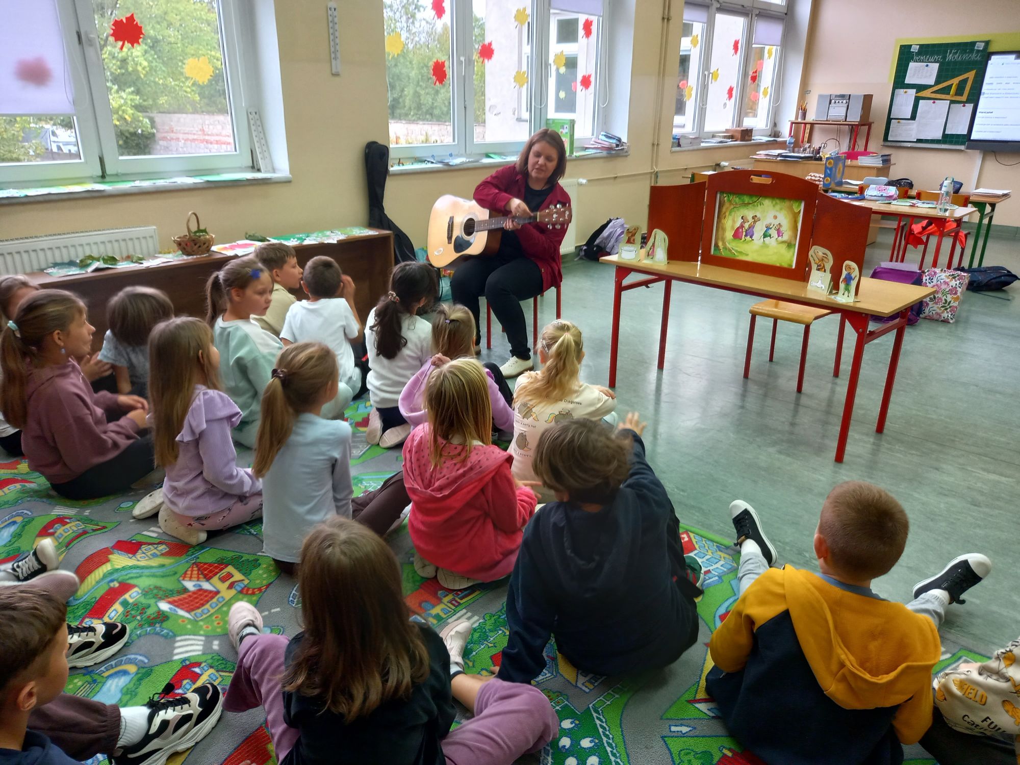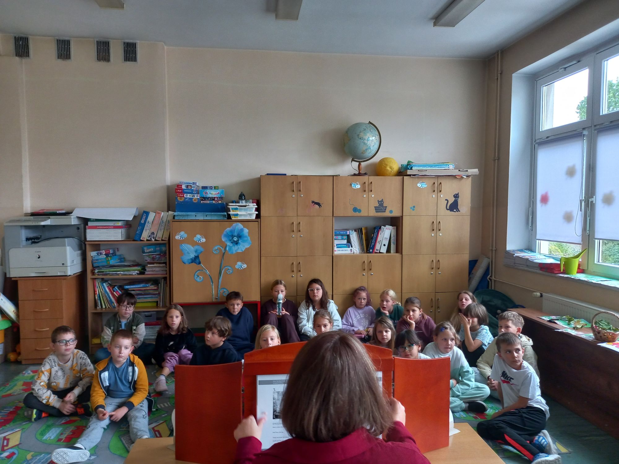 7 października 2025 roku uczniowie klasy 2 i 3 uczestniczyli w interesujących zajęciach, które zostały przeprowadzone przez panie z Miejskiej i Gminnej Biblioteki Publicznej w Ozimku w ramach Narodowego Programu Rozwoju Czytelnictwa 2.0. Na początku spotkania uczniowie wysłuchali bajki kamishibai „Jak Nowatorscy przestali rozmawiać”, następnie odpowiadali na pytania związane z wysłuchaną historią, dzielili się swoimi spostrzeżeniami i uczestniczyli w tematycznych grach i zabawach. Na zakończenie nauczyli się piosenki, którą wspónie śpiewali przy dźwiękach gitary.