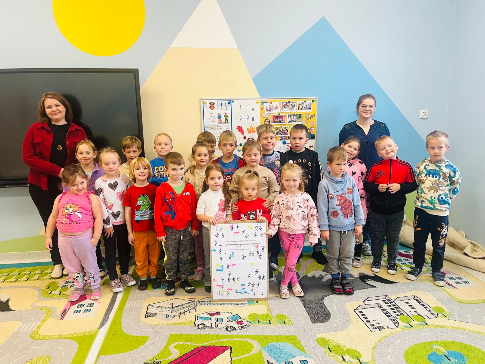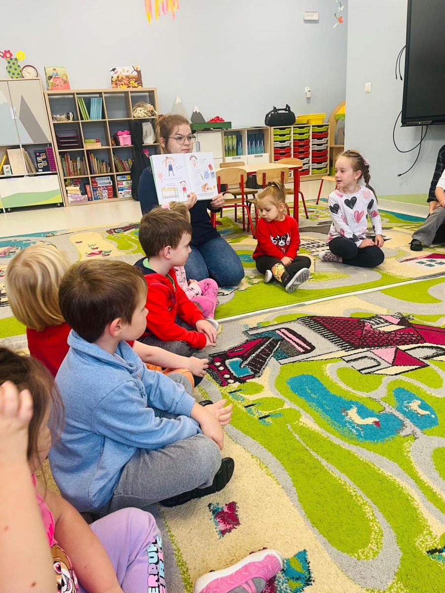 7 października 2025 roku nasz oddział przedszkolny odwiedziły panie z Miejskiej i Gminnej Biblioteki Publicznej w Ozimku, żeby przeprowadzić zajęcia biblioteczne, w których uczestniczyli też pierwszoklasiści. Temat spotkania związany był z akceptacją i zrozumieniem innych. Dzieci z zaciekawieniem wysłuchały bajki „Co zrobi Frania?”, a następnie rozmawiały o tym, jak ważne jest, by być miłym, empatycznym i akceptować różnice między nami. Te interesujące zajęcia przeprowadzone zostały w ramach Narodowego Programu Rozwoju Czytelnictwa 2.0.